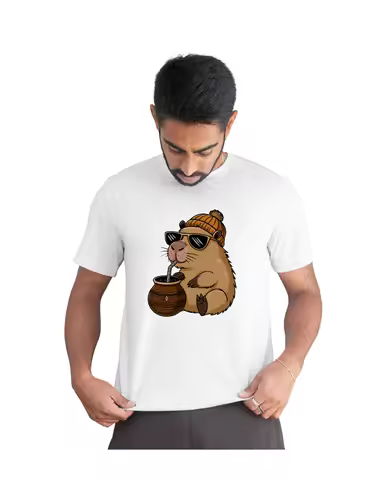 Camiseta Masculina Manga Curta 100% Algodão Estampada Capivara Chimarrão do P ao G1