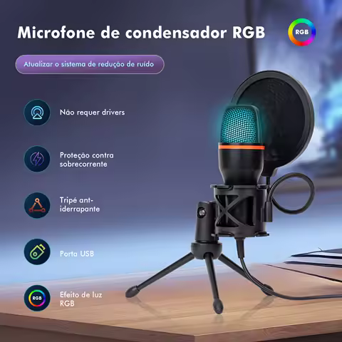 Microfone de Mesa RGB com Cancelamento de Ruído A