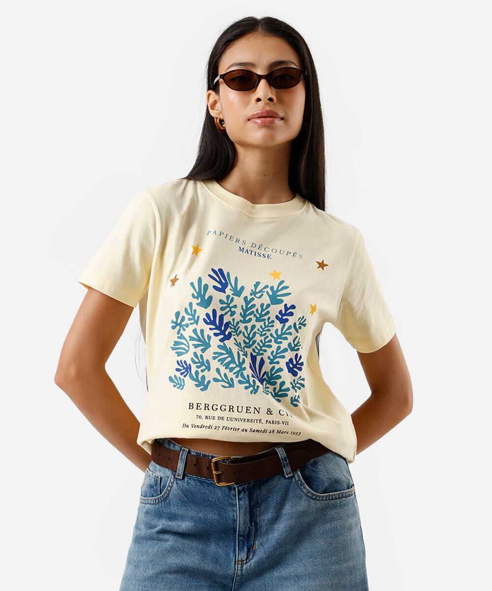 camiseta feminina de algodão estampada matisse amarela
