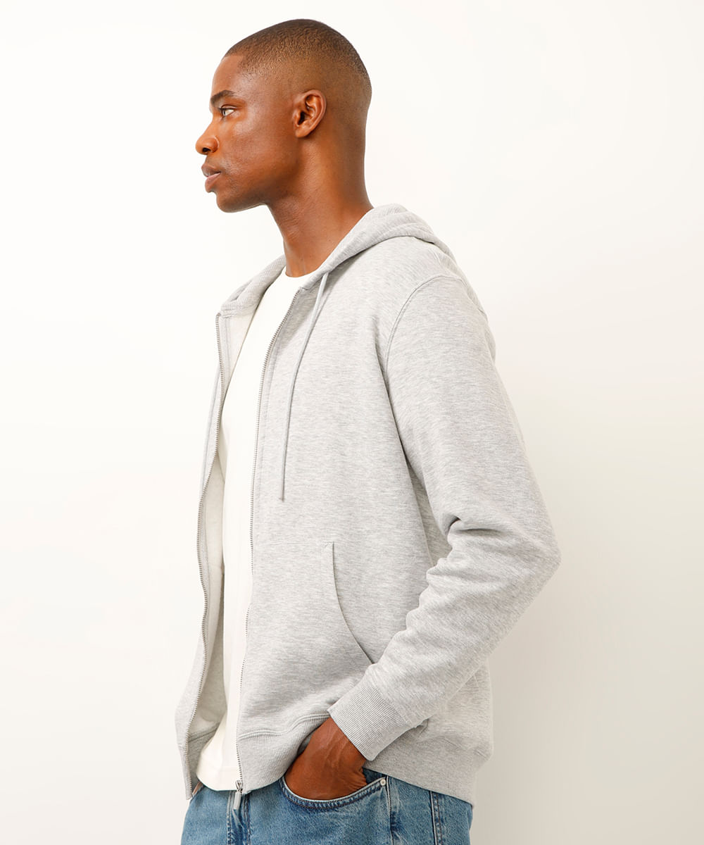 blusão de moletom básico com capuz cinza