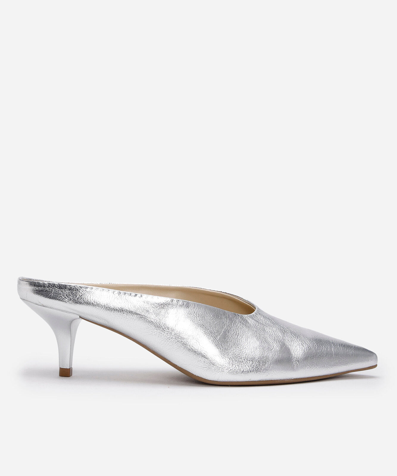 scarpin mule bico fino mindset prateado