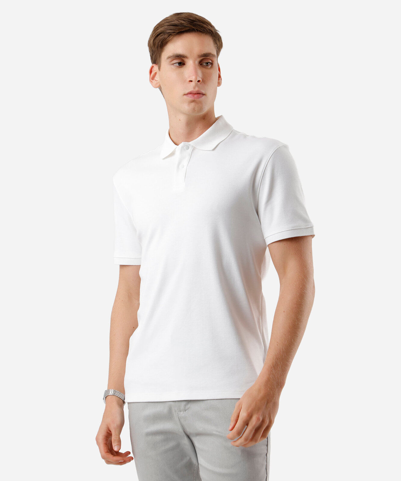 polo masculina de algodão peruano manga curta off white