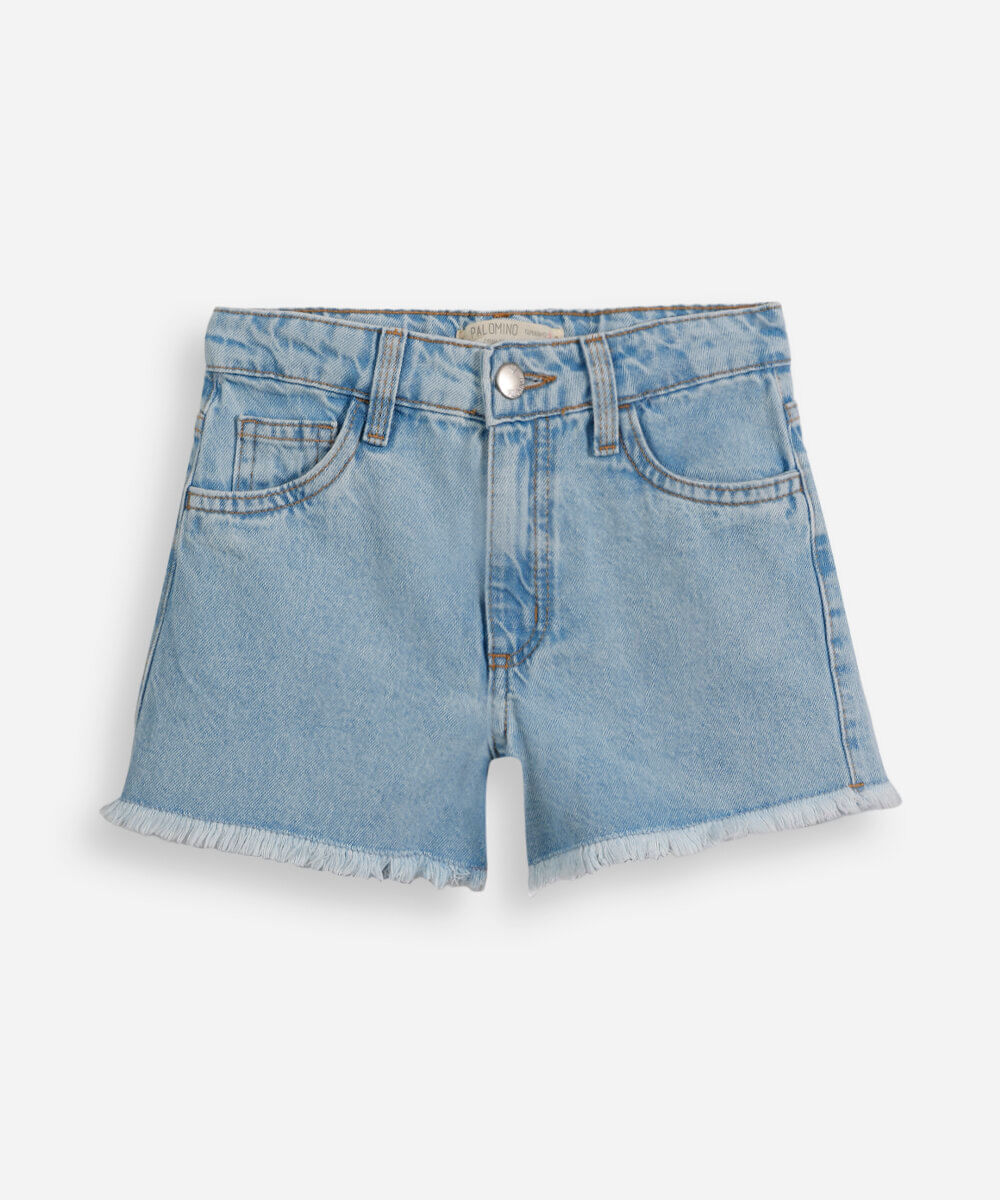 short infantil jeans com barra desfiada azul