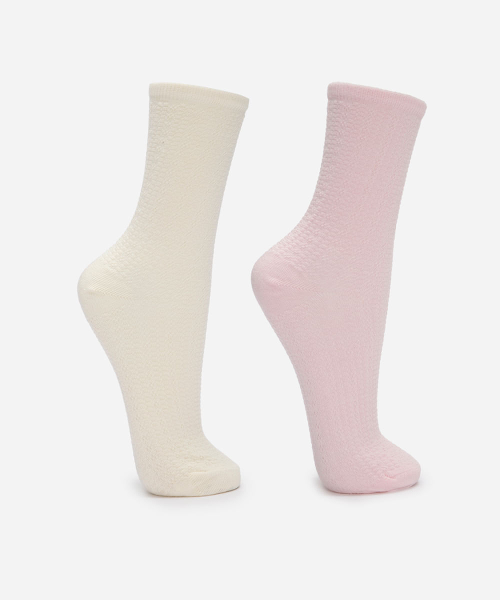 kit de 2 meias cano alto texturizada colorido