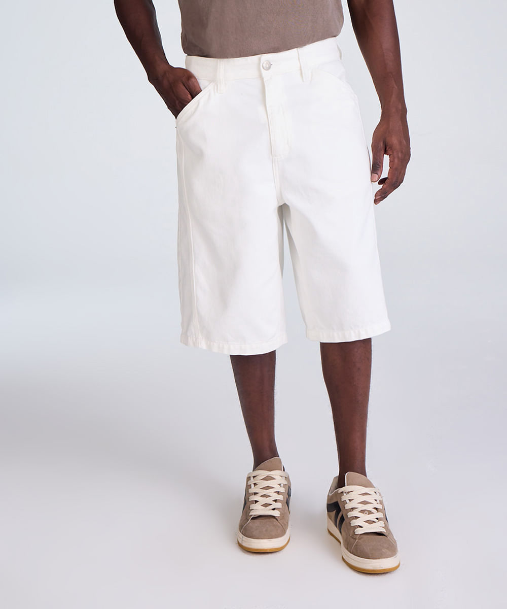 bermuda baggy masculina de sarja com recorte off white