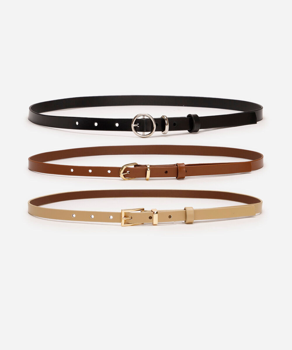 kit de 3 cintos com fivela geométrica colorido