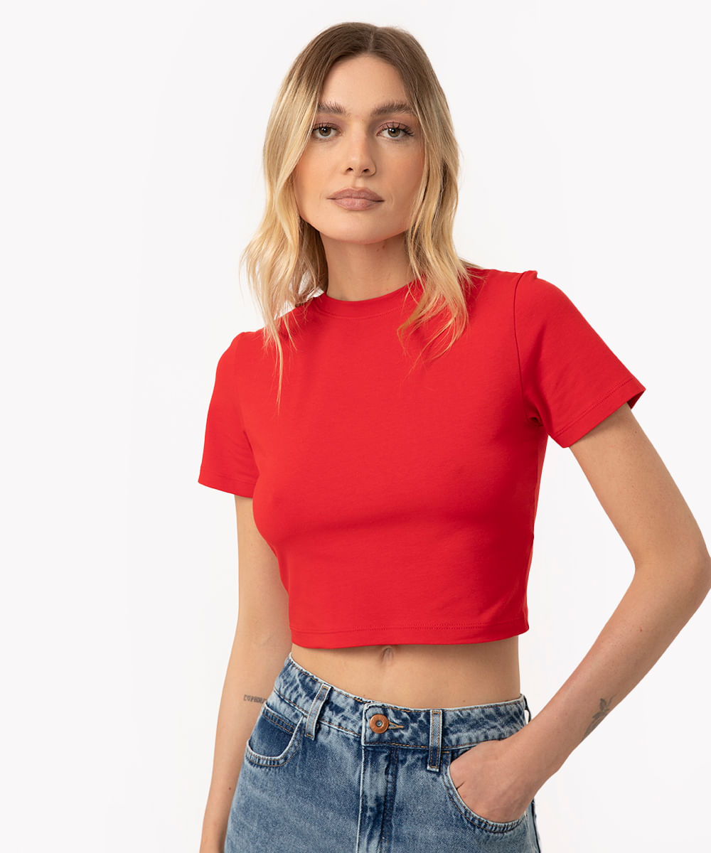 blusa baby look de algodão peruano vermelha
