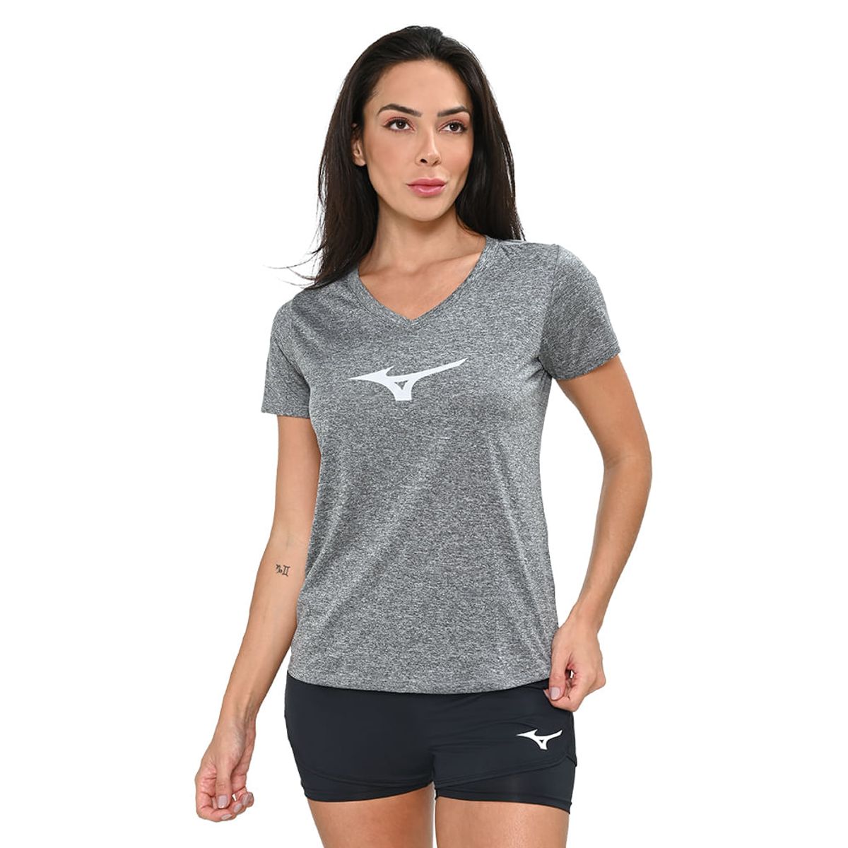 Camiseta de Corrida Feminina Mizuno Big Logo M Cinza