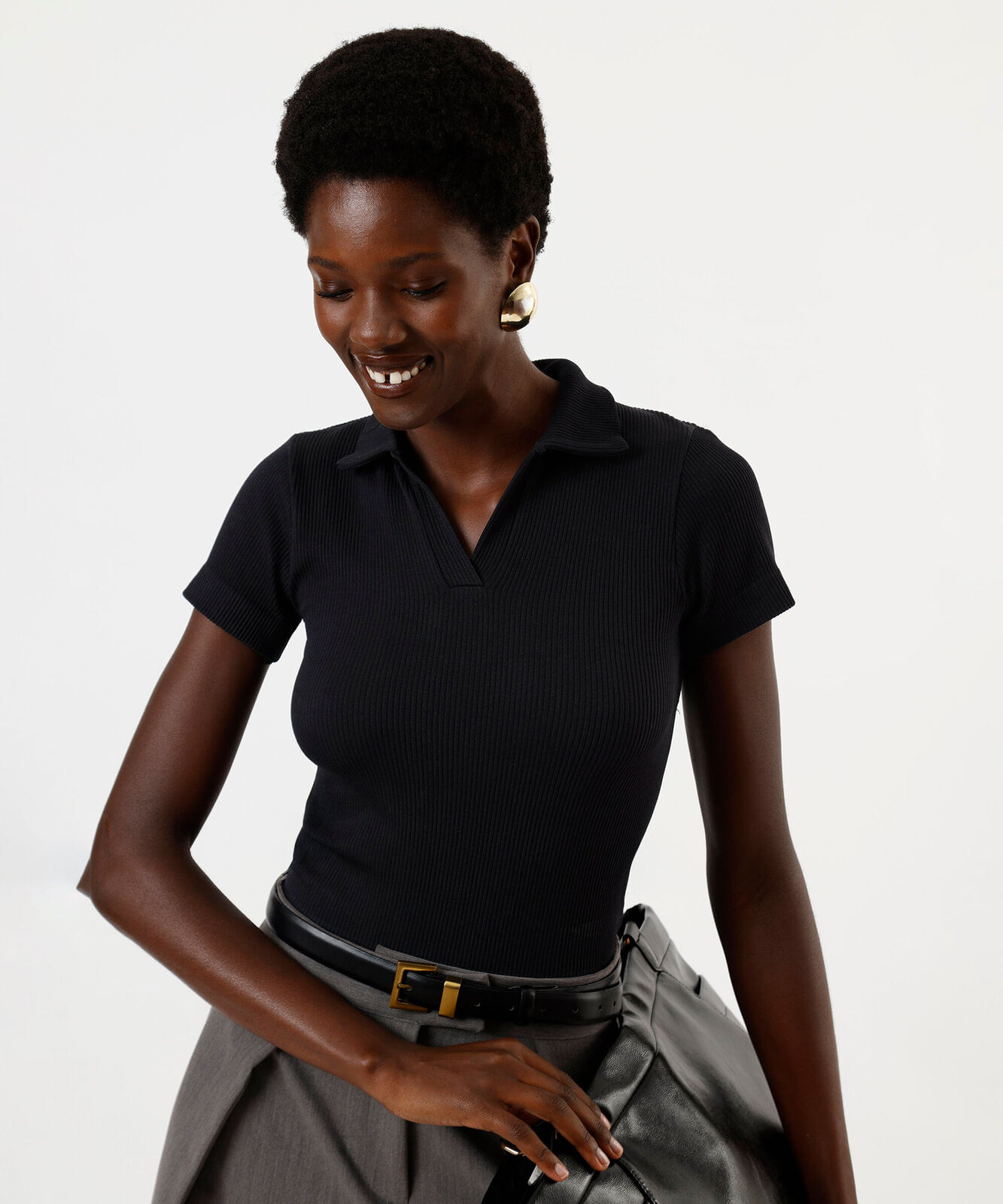 polo feminina manga curta poliamida preta