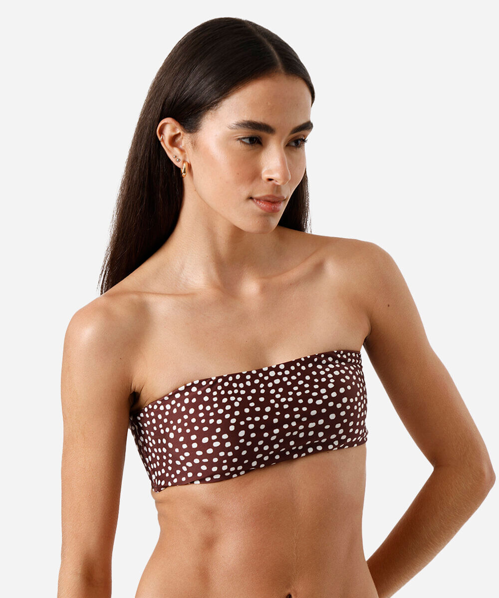 biquíni top faixa feminino sem alça poá marrom