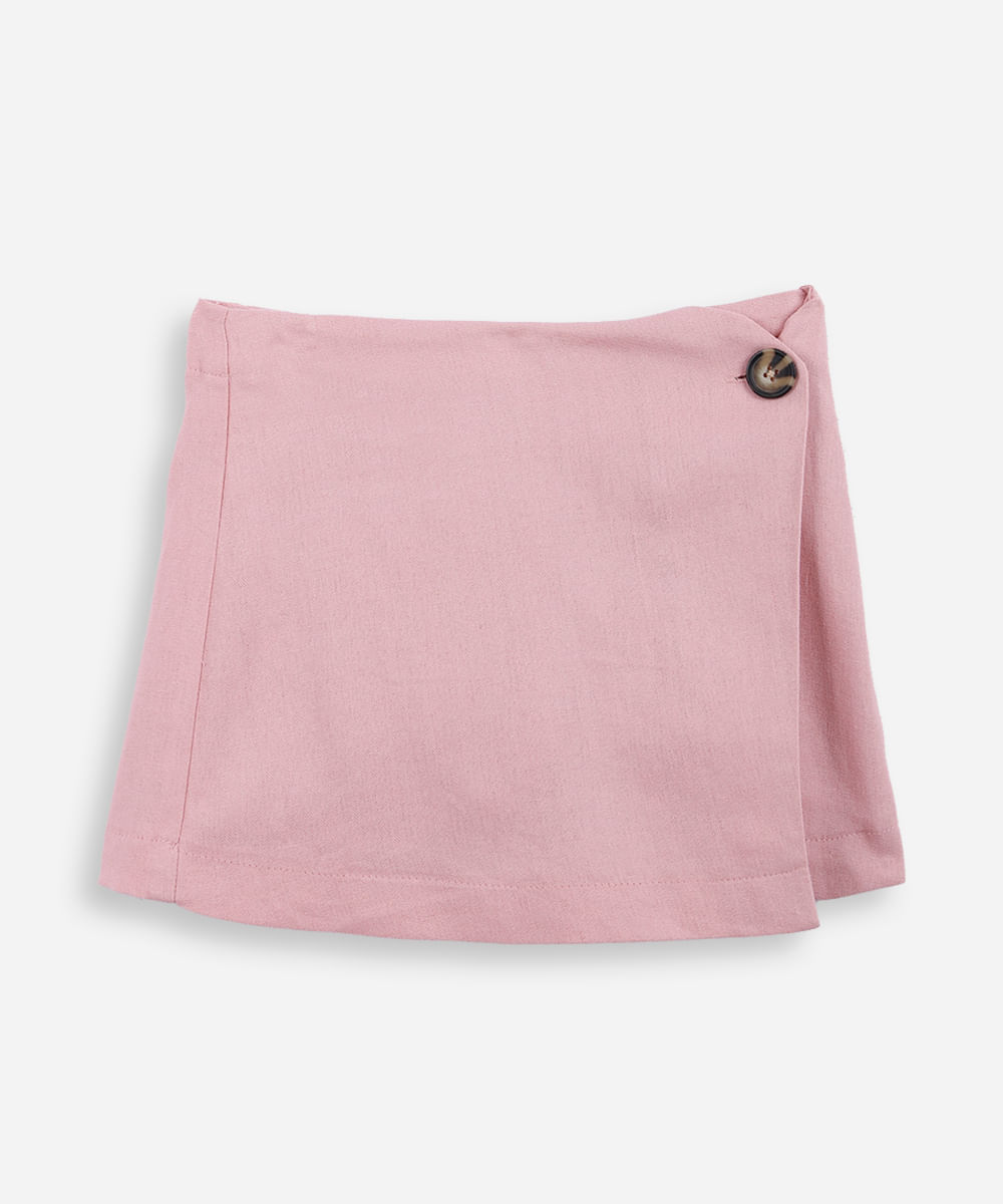 short saia infantil com linho rosa