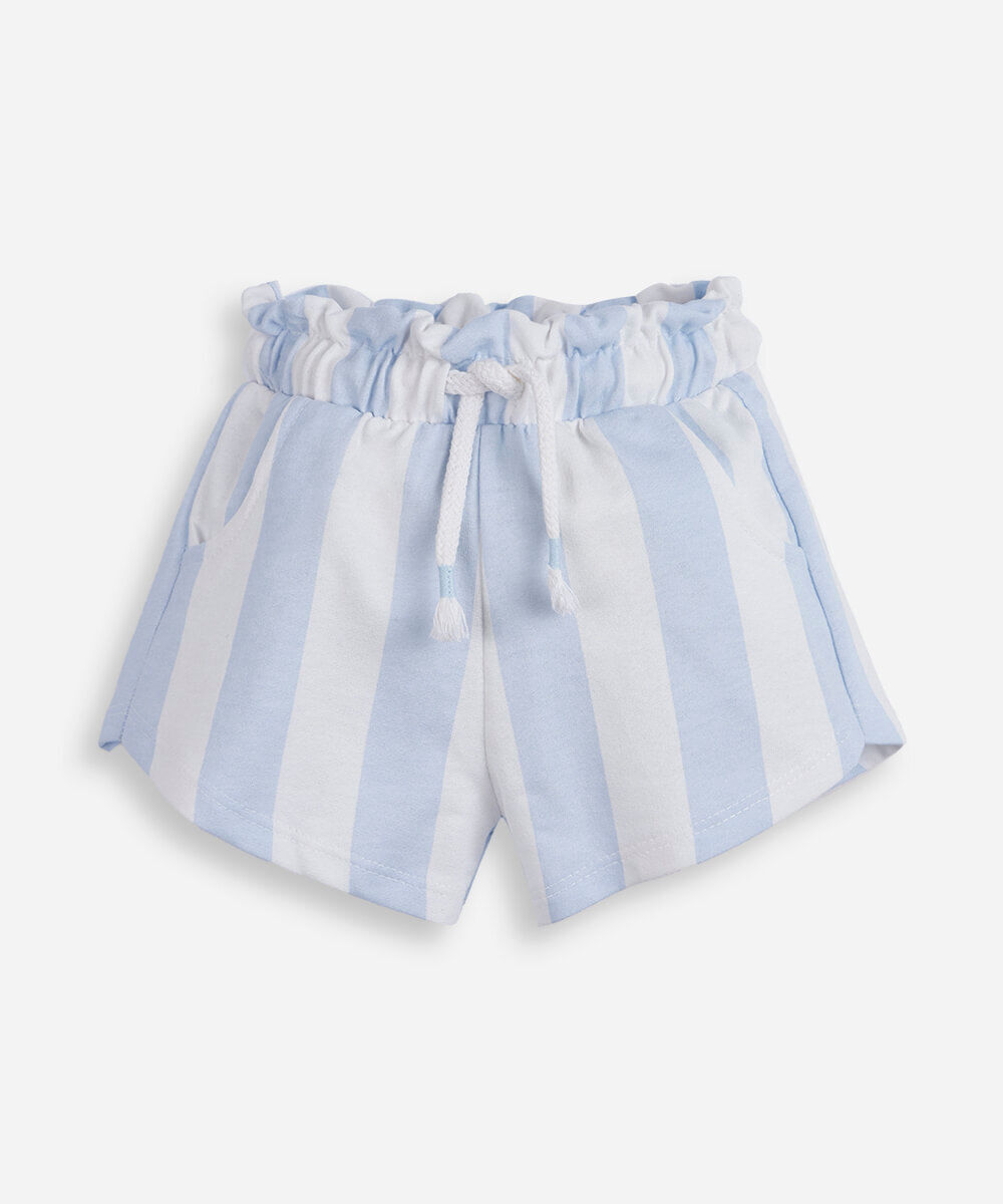 short clochard infantil de moletinho listrado azul
