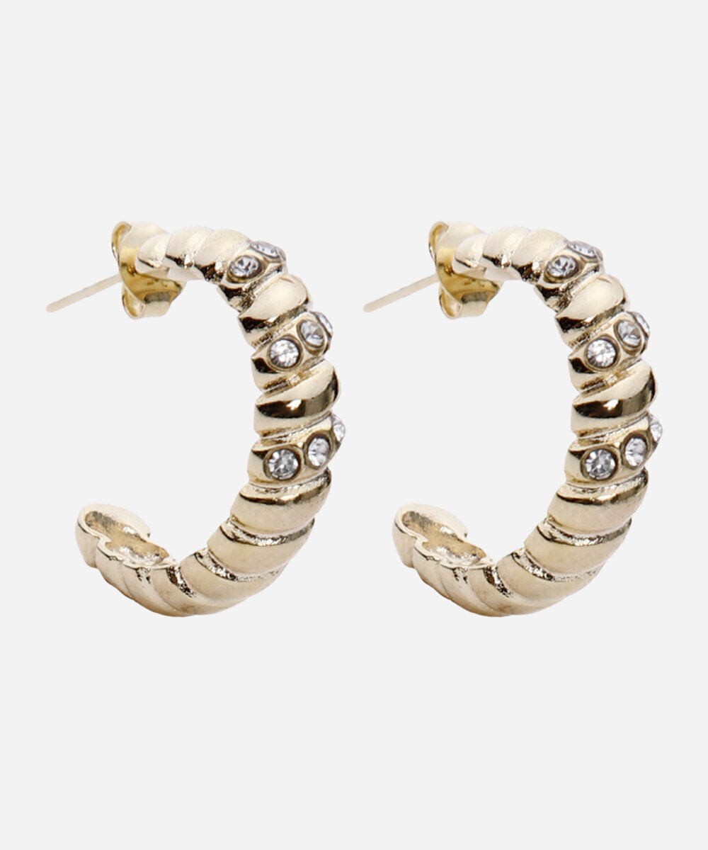 brinco argola com brilhos canelado dourado
