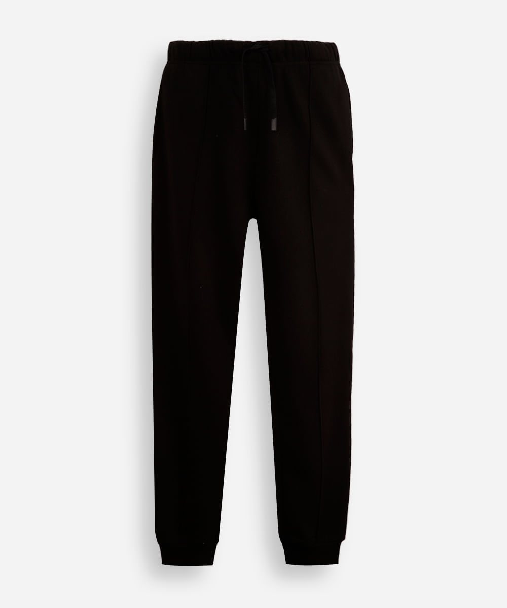 calça jogger juvenil de moletom com nervura preta