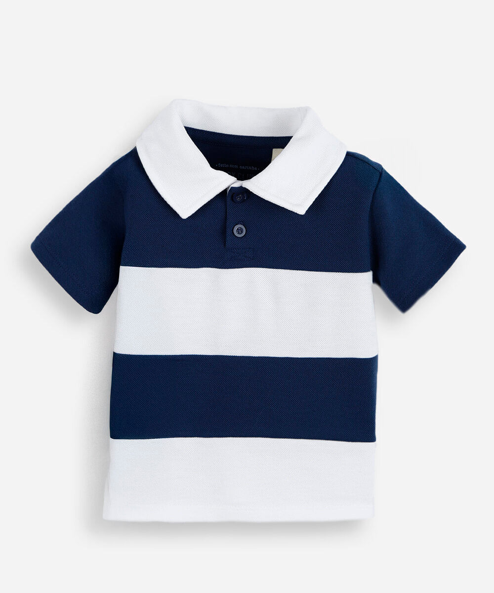 polo infantil de algodão listrada off white