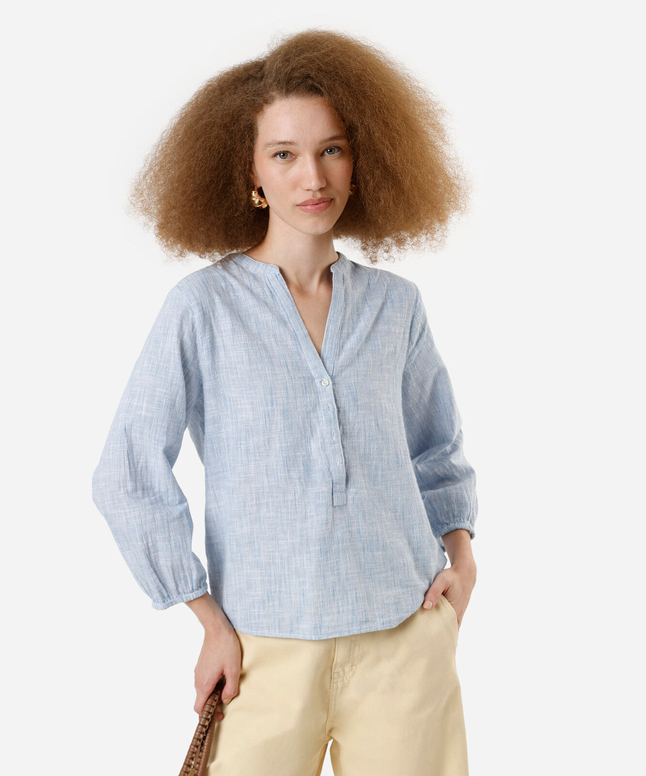 bata algodão manga longa com botões listrada azul