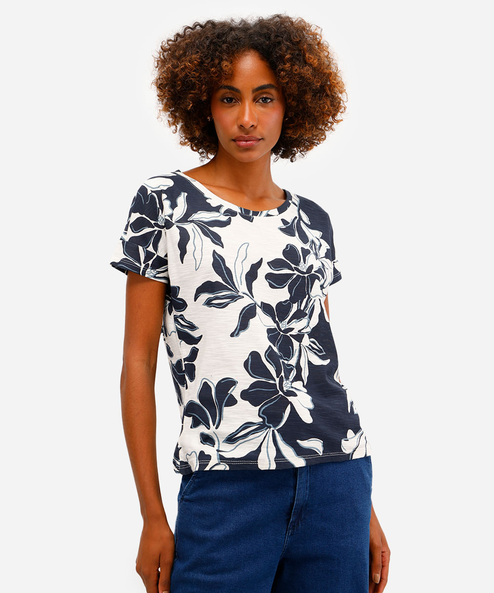 blusa feminina de algodão manga curta floral azul