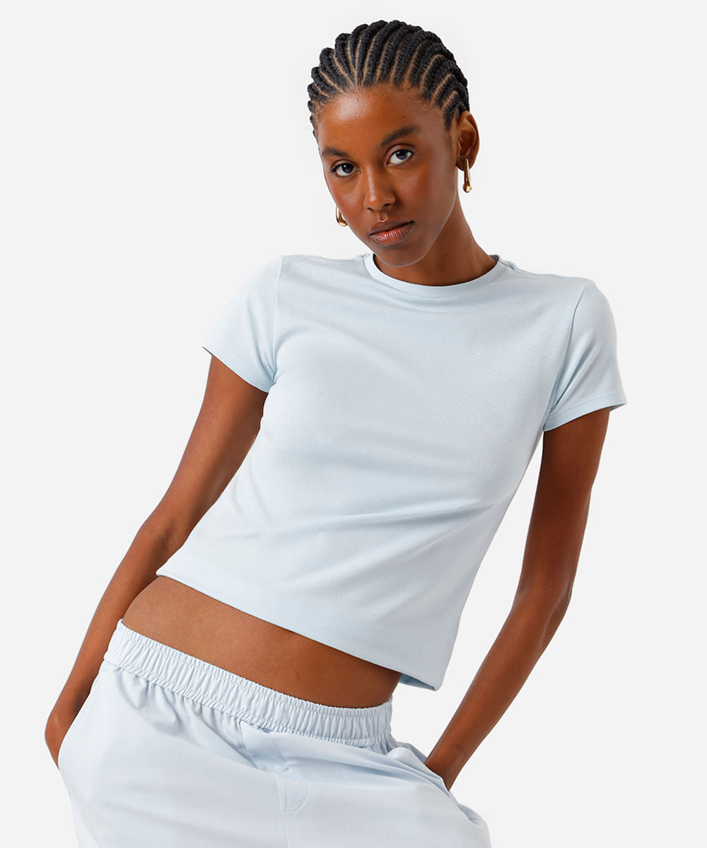camiseta básica feminina de algodão manga curta azul