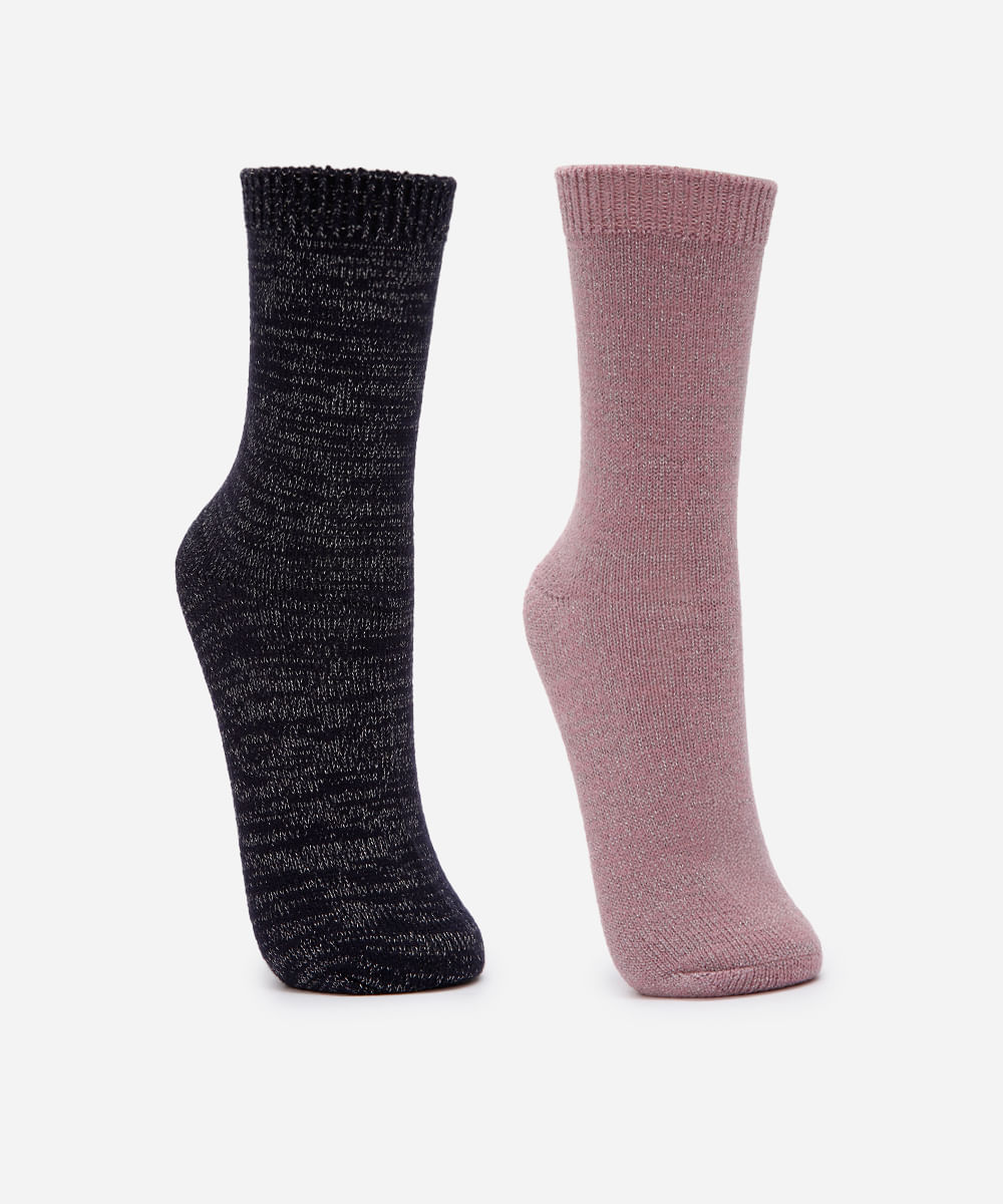 kit de 2 meias cano longo de tricot com lurex colorido