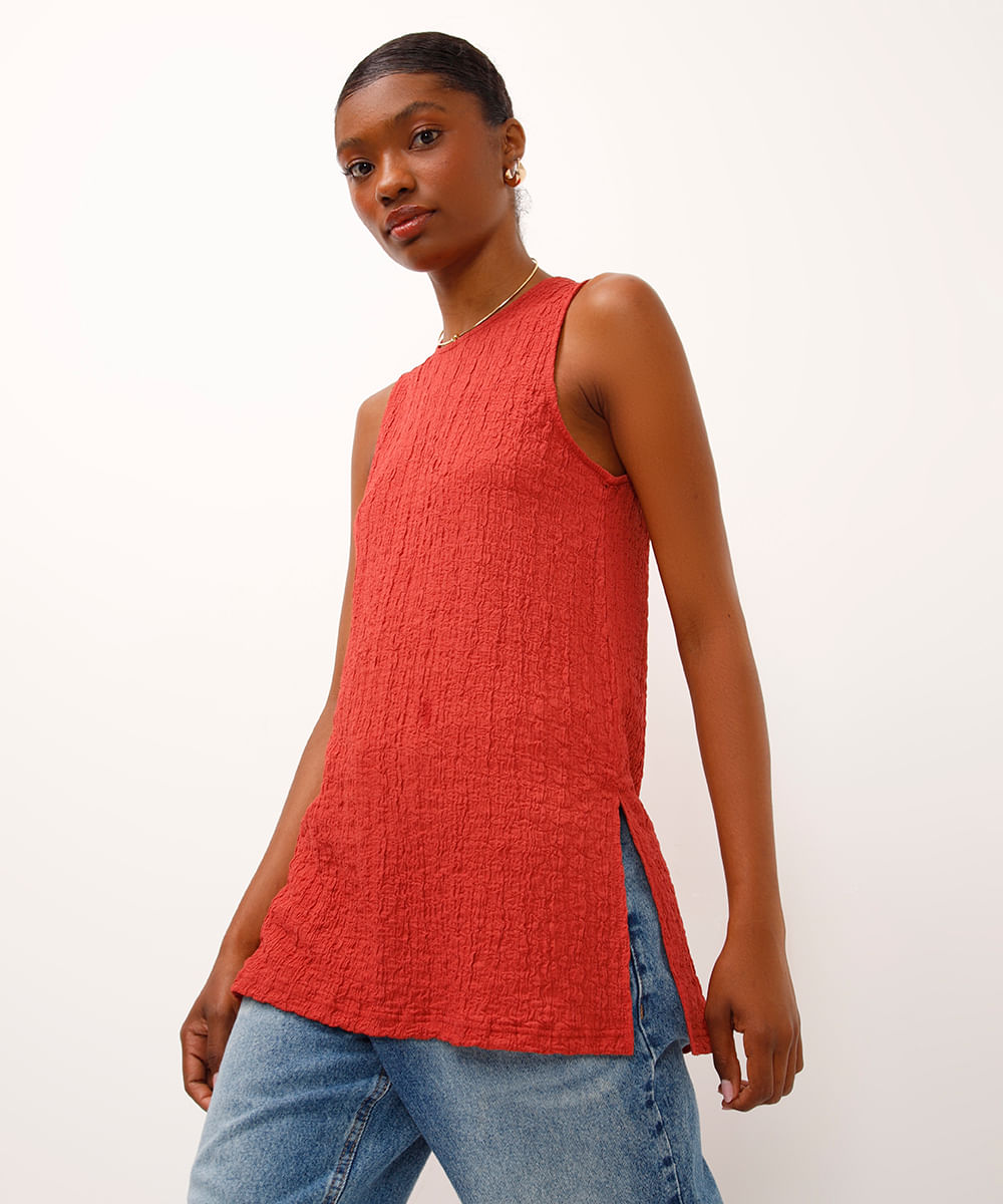 túnica decote redondo texturizada laranja