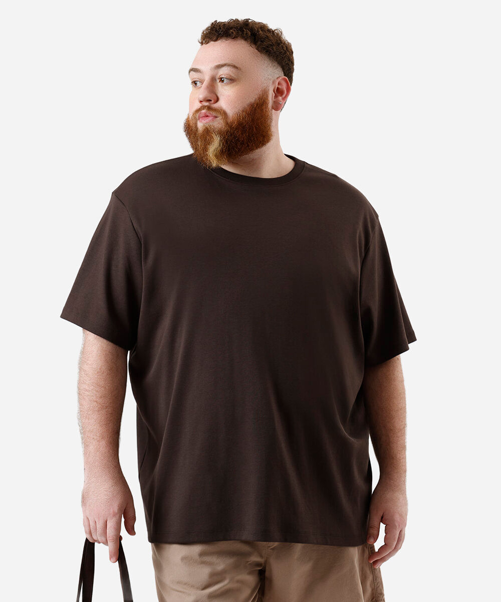 camiseta de algodão peruano plus size marrom