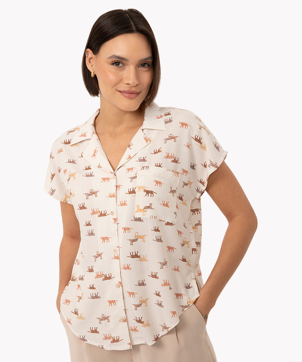 camisa de viscose onça com bolso manga curta off white