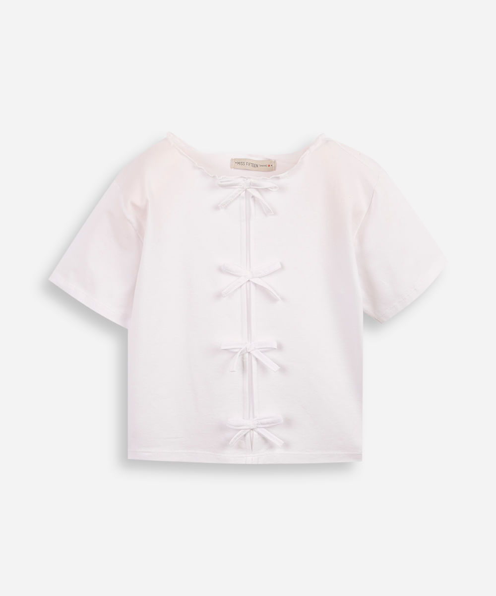 blusa juvenil manga curta lacinhos frente off white