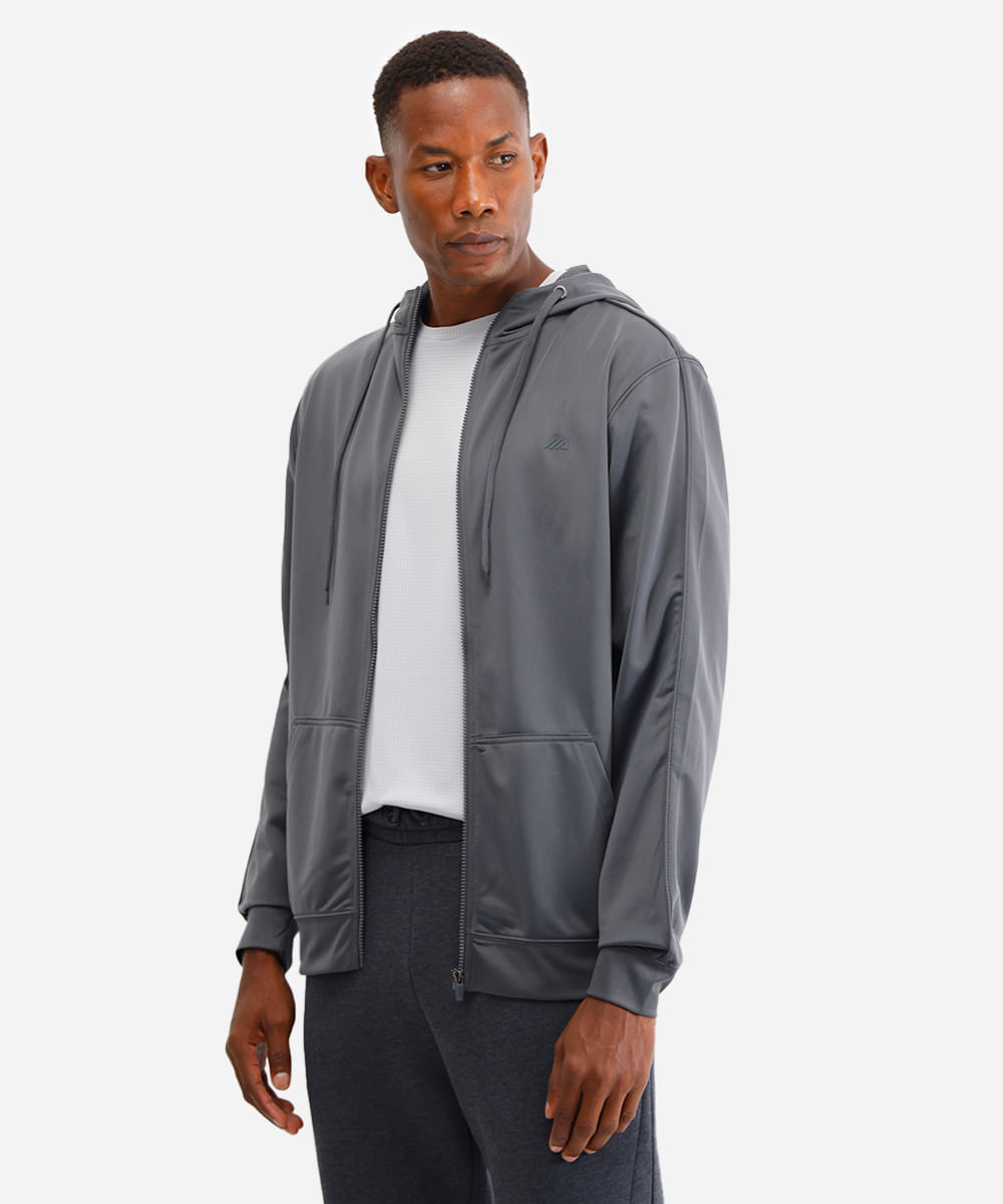 jaqueta com bolsos gola alta com capuz esportiva ace cinza