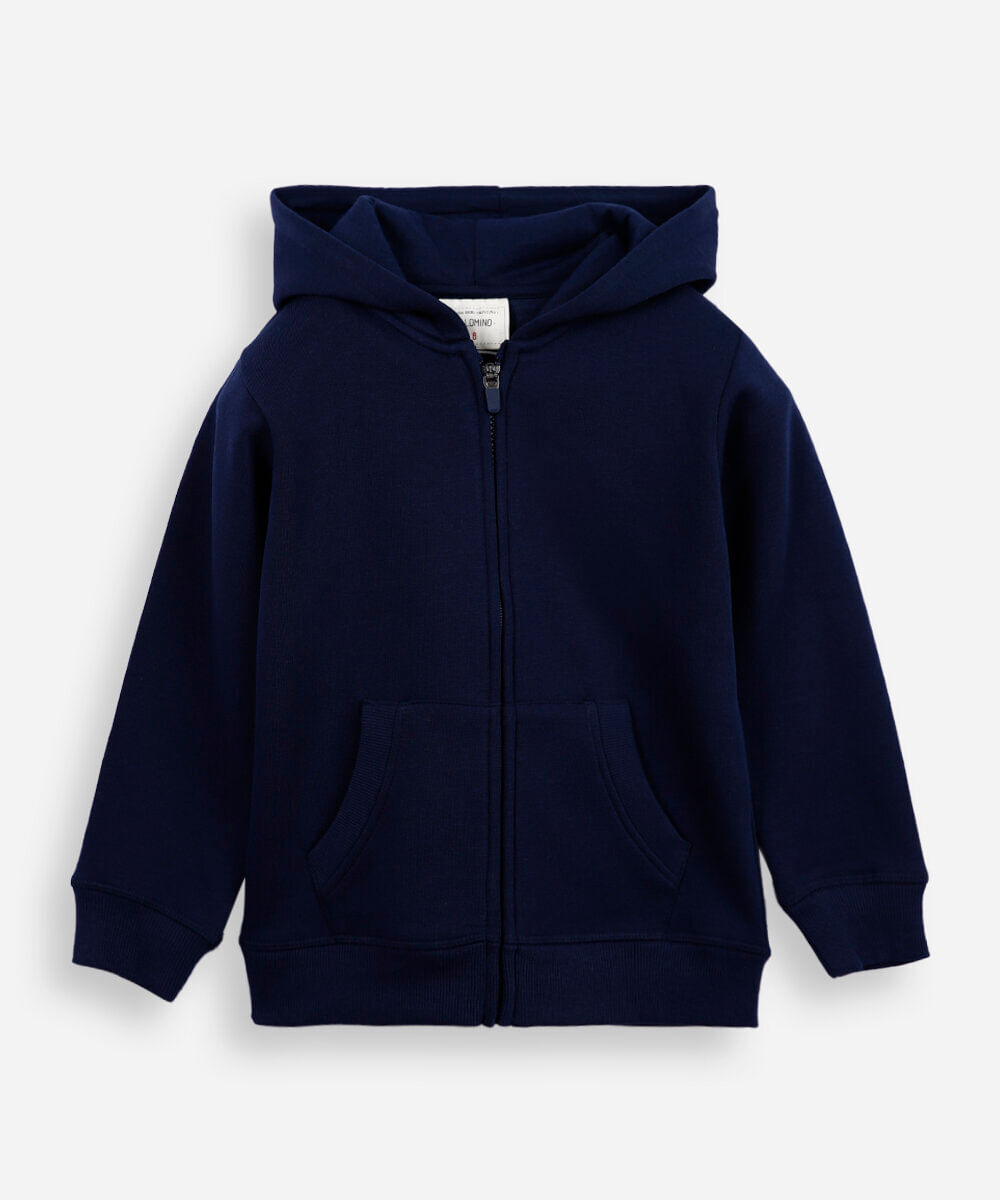 blusa infantil de moletom felpado com capuz azul