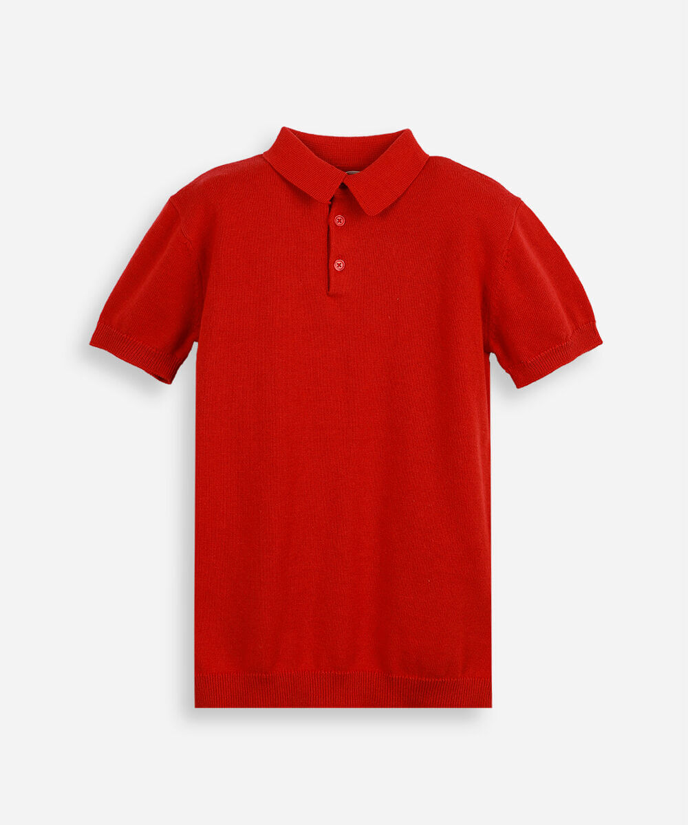 polo infantil de tricot manga curta vermelha