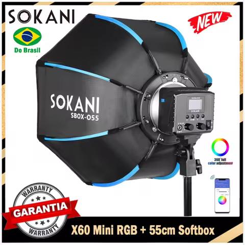 【DO BRASIL】Sokani X60 Mini RGB COB LED Video Light, Octagon Softbox para TikTok, YouTube, Fotografia, Gravação de Vídeo, 60W