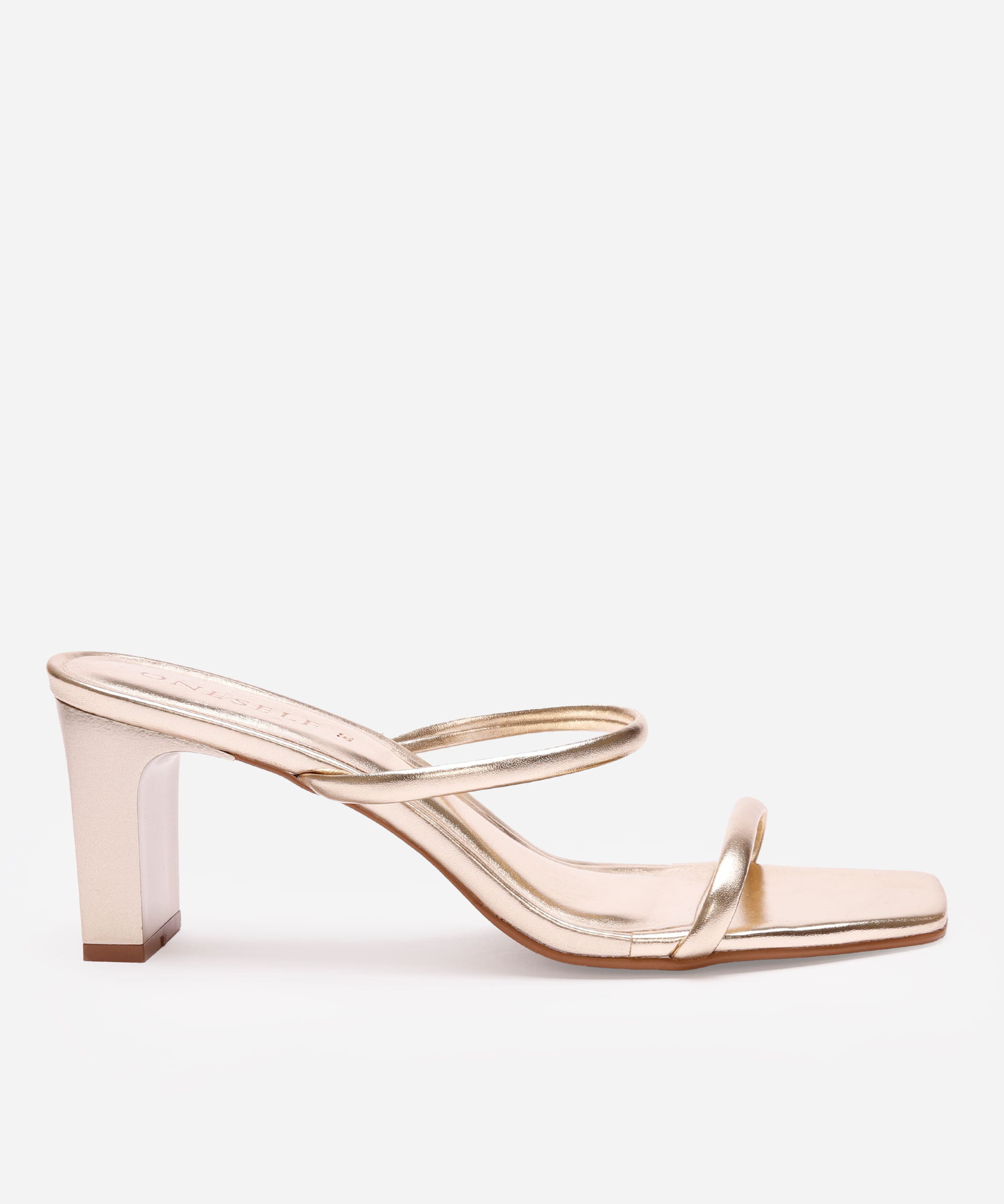 tamanco verniz salto médio tiras finas oneself dourado