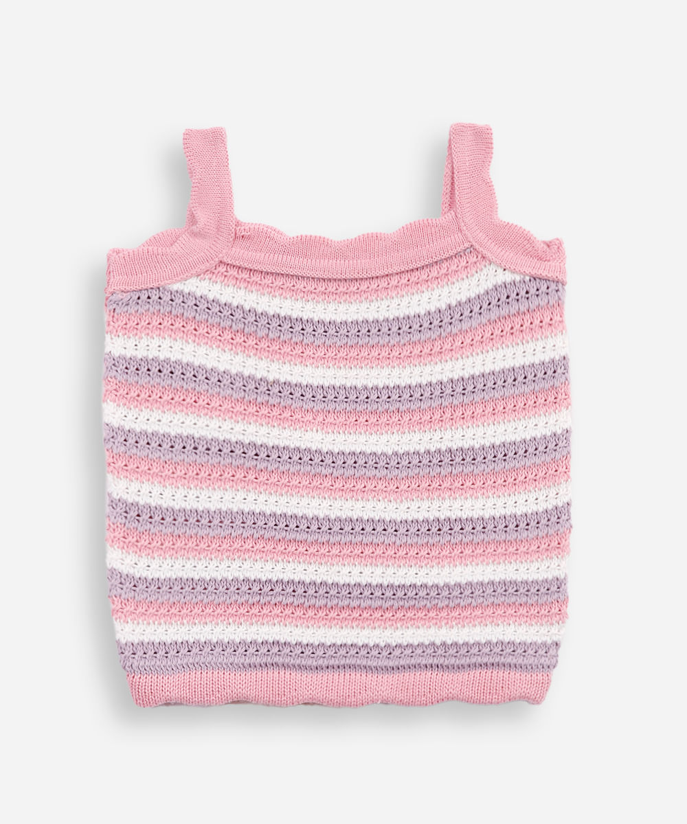 regata infantil de tricot listrada rosa