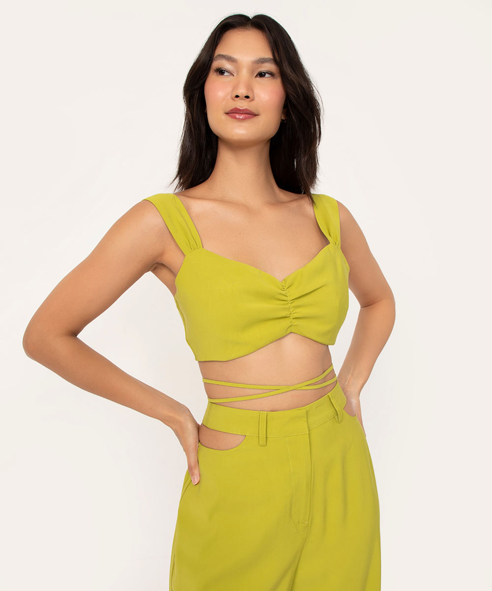 top cropped com franzido e amarração verde