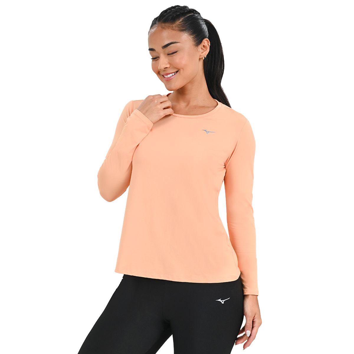 Camiseta Manga Longa de Corrida Feminina Mizuno Pro Uv +50 M Laranja