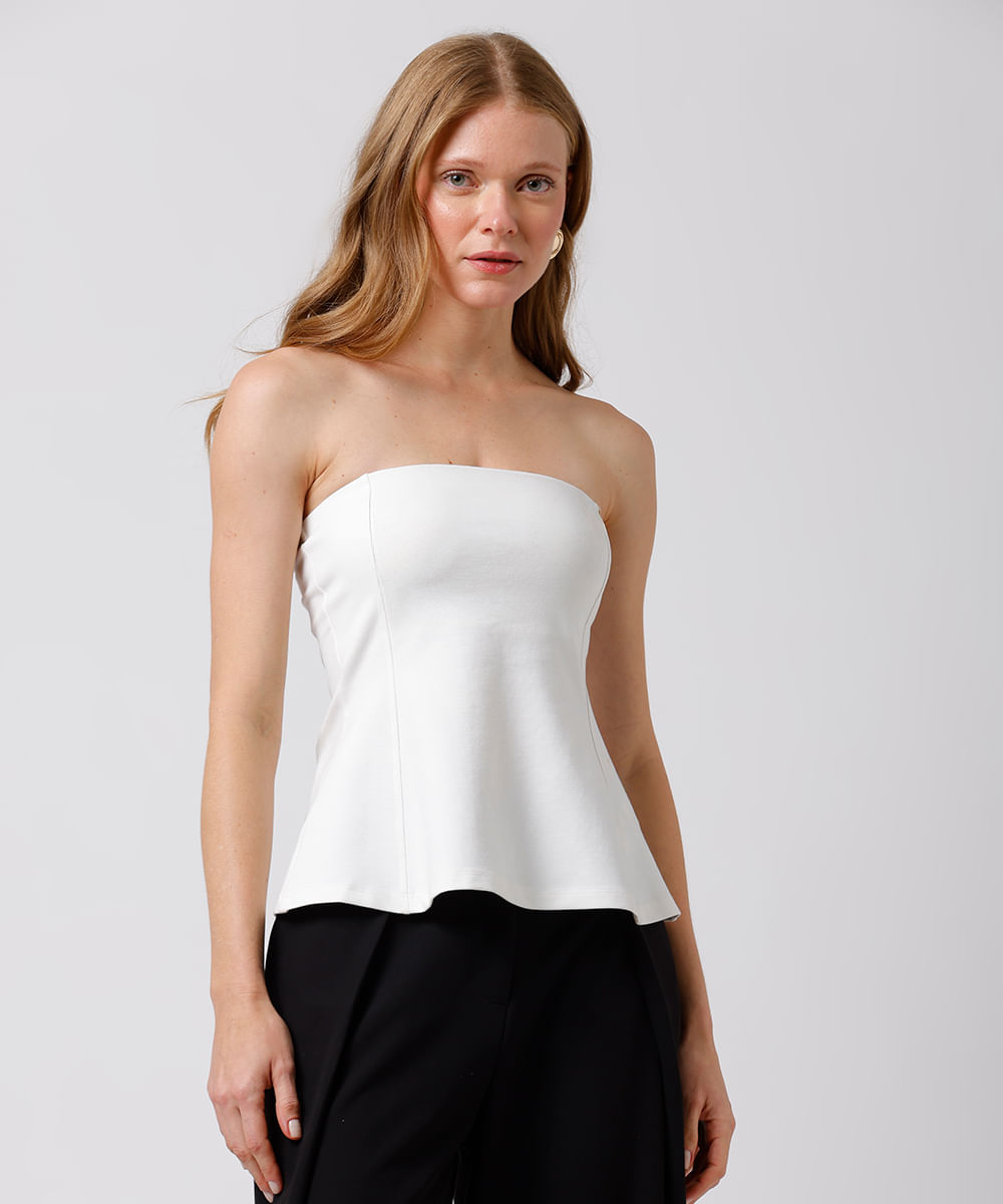 blusa peplum feminina sem alça mindset off white