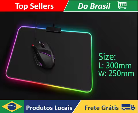Mouse pad com luz led, rgb, 7 linhas, para gamer, 250mm x 350mm