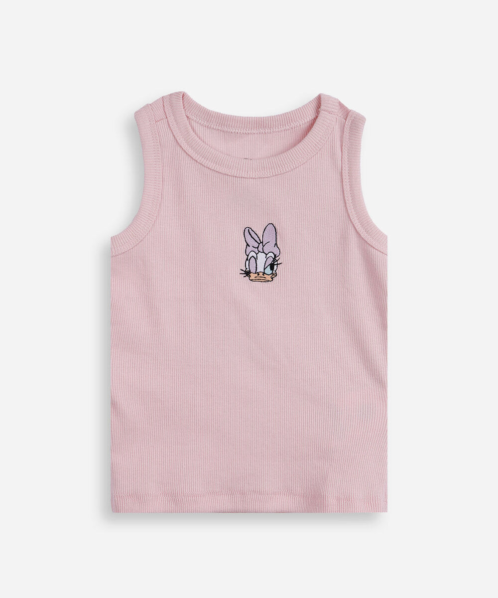 regata infantil de algodão canelada margarida rosa