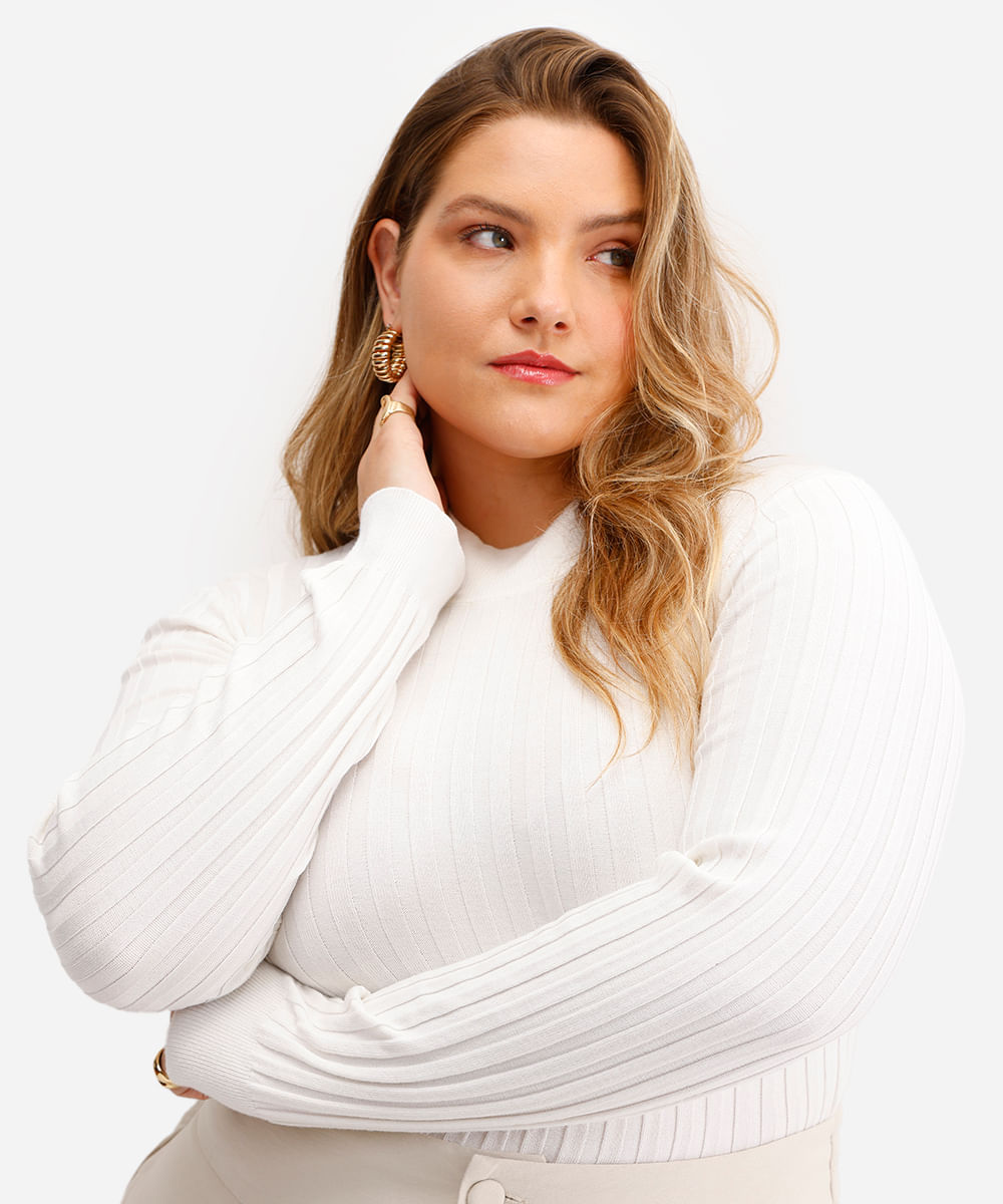 blusa feminina de tricot canelada plus size off white