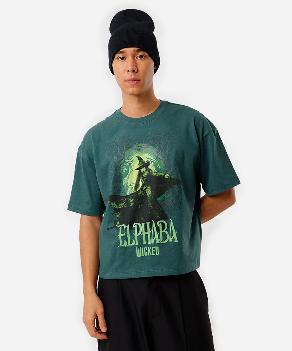 camiseta de algodão manga curta folhagem verde