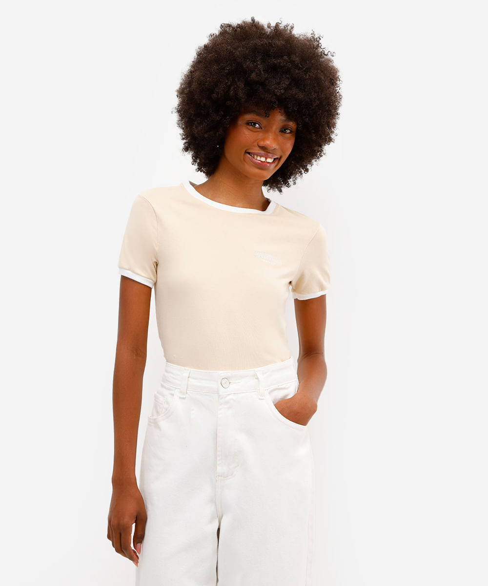 blusa feminina de algodão com bordado manhattan bege