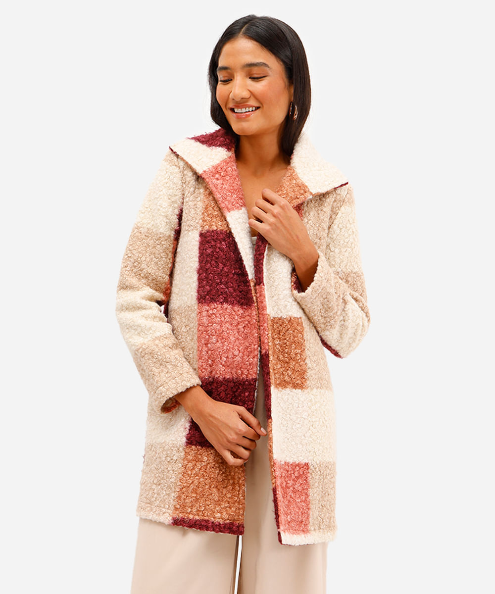 casaco alongado feminino texturizado xadrez vinho