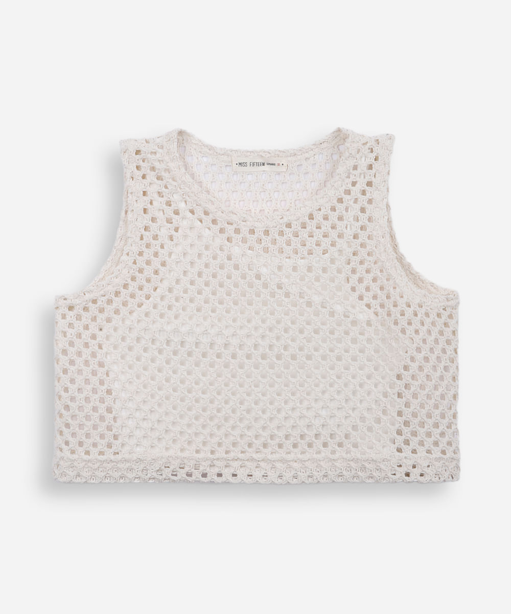 cropped de tricot juvenil bege