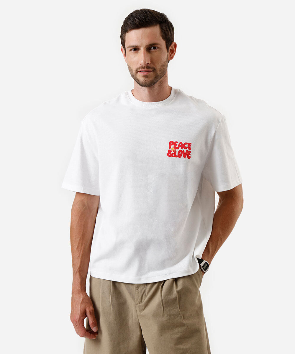 camiseta box fit masculina de algodão peanuts off white