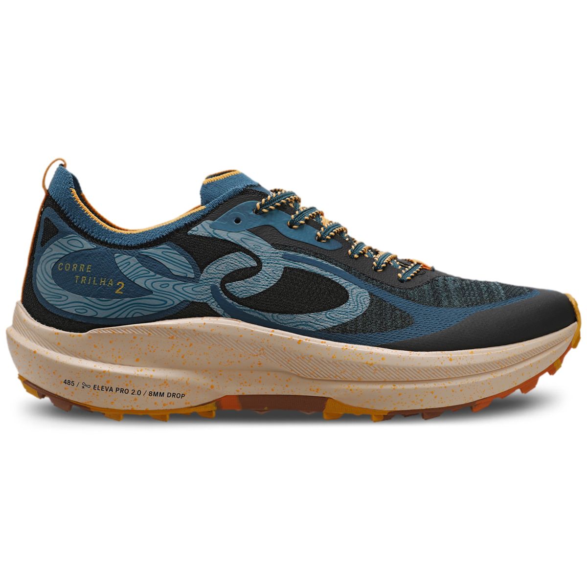 O principal tênis da Olympikus para corridas em t... Maisrilhas chega a sua segunda edição. O Corre Trilha 2 apresenta solado com tecnologia Eleva Pro 2.0, que melhora os índices de resiliência, conforto e responsividade. Possui também borracha antiderrapante da reconhecida marca Vibram, proporcionando maior aderência, segurança nas passadas e resistência à abrasão. Seu cabedal é confeccionado com fios de monofilamento e poliéster, garantindo uma excelente transpiração e secagem rápida quando em contato com água. Além disso, conta com a tecnologia Oxitec 2.0, que garante extrema leveza, alta respirabilidade e flexibilidade para um desempenho superior e conforto térmico. A gola, elaborada com poliéster e elastano, proporciona conforto e praticidade no momento de calçar. O logo, aplicado em high frequency com material de espessura de 0,35mm, confere à sapatilha extrema leveza e resistência. Já o atacador é composto por tecido poliéster texturizado, garantindo uma amarração firme e precisa, enquanto o puxador traseiro em elástico foi projetado para auxiliar no calce. Seu forro foi desenvolvido em tecido poliéster e sua palmilha, moldada e perfurada em EVA, evita a absorção de líquidos, é respirável e proporciona suporte aos pés. Menos