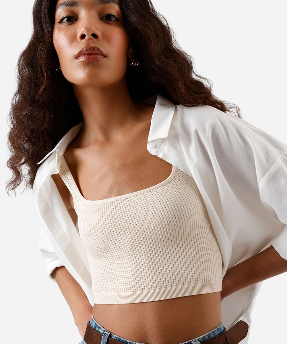 cropped básico feminino texturizado bege