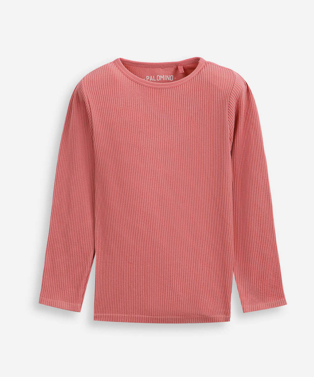 blusa canelada infantil manga longa rosa