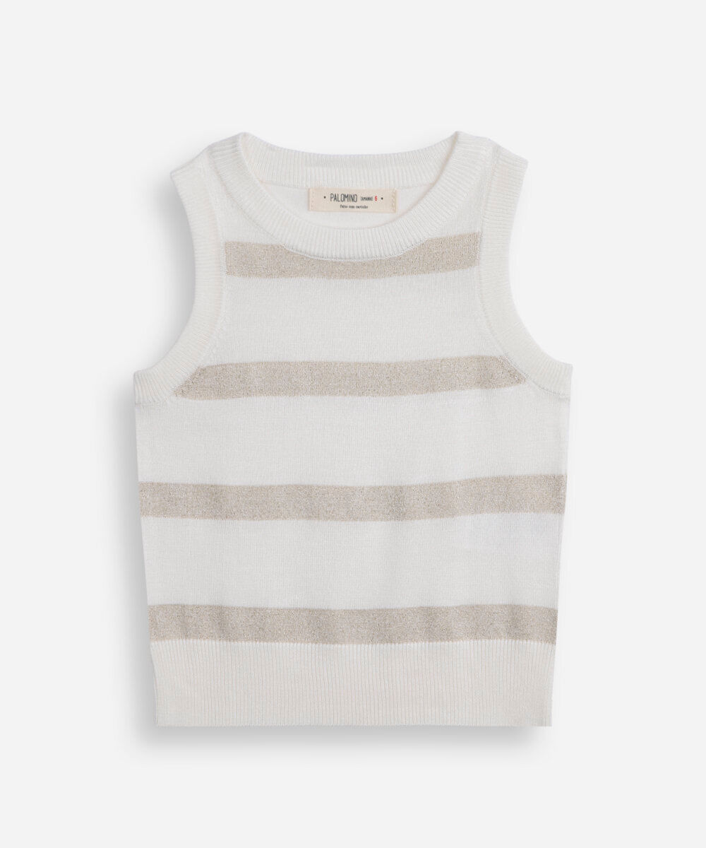 regata infantil de tricot com lurex listrada off white