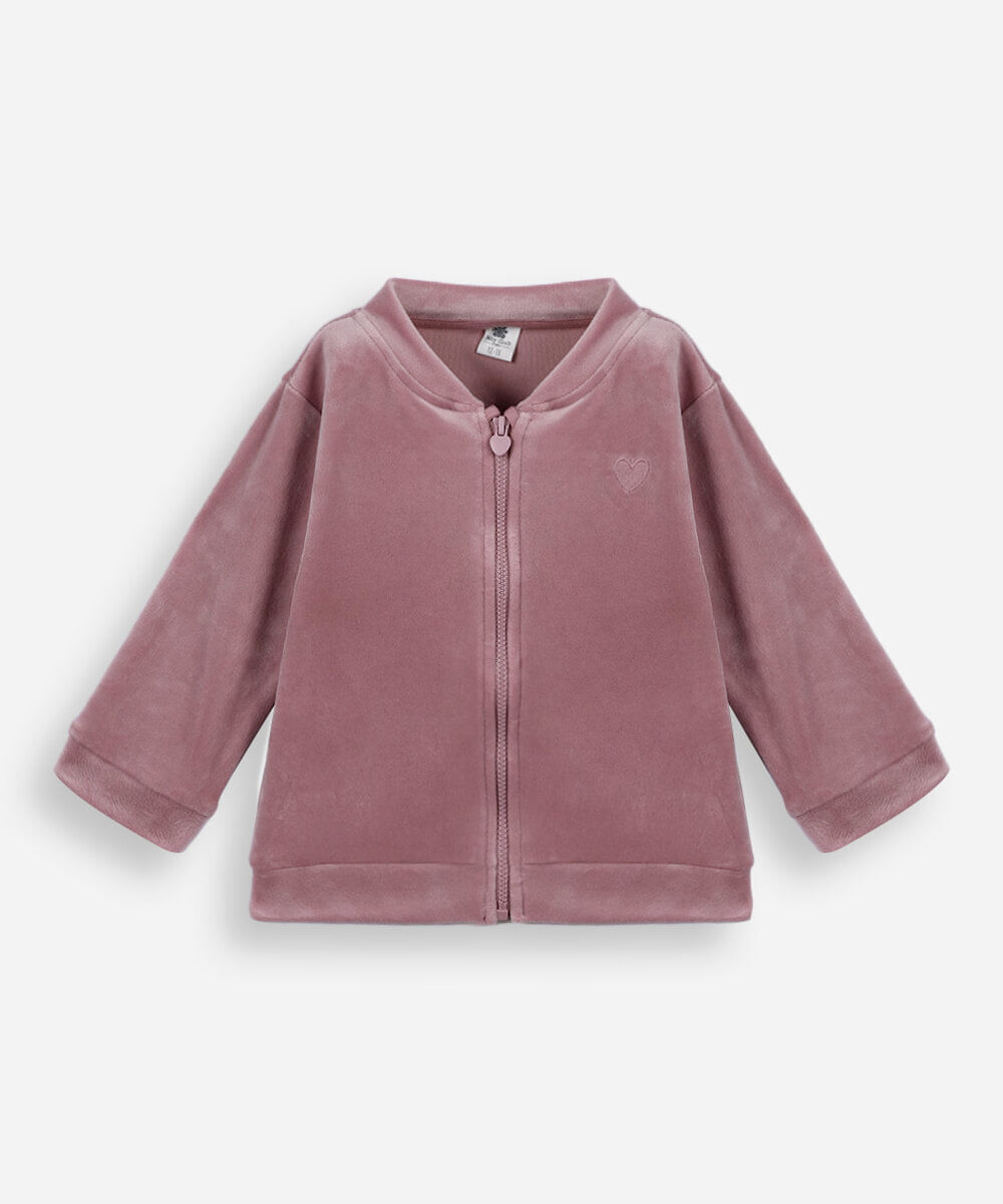 jaqueta infantil de plush com bordado rosa