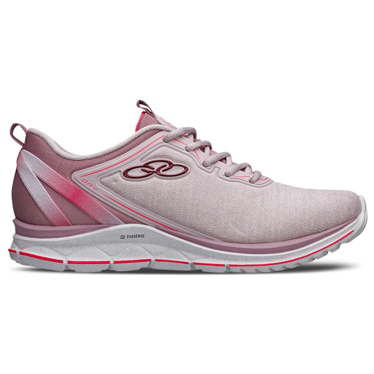 O Tênis Olympikus Day tem cabedal em tecido macio... Mais e sem costuras, fitas elásticas sobre o calcanhar e desenho com recortes na sola. A palmilha Feetpad, que memoriza o formato dos pés, e o solado com tecnologia Evasense garantem mais conforto e maciez. Menos